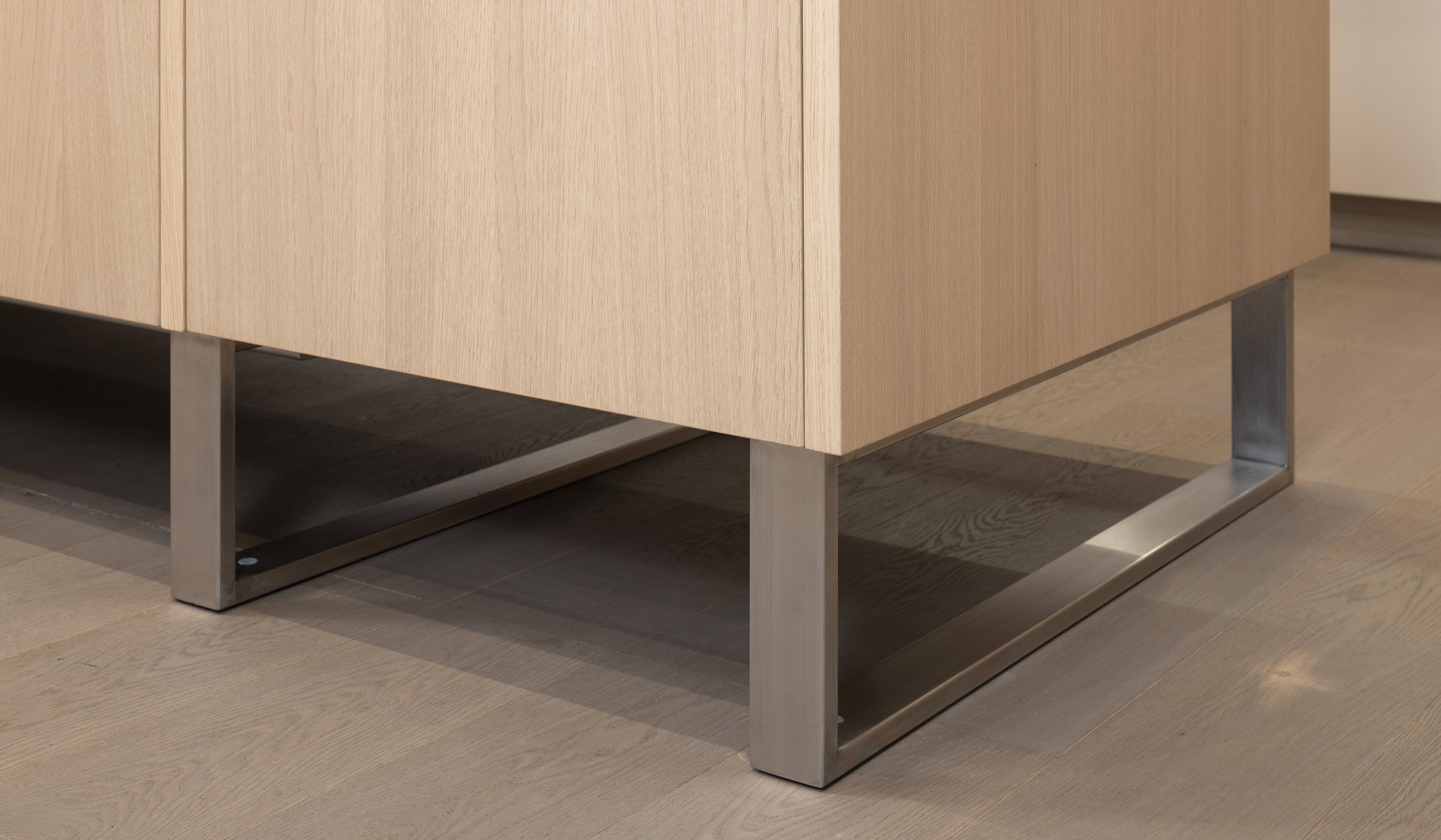 Eine neuere Bauform, die man mittlerweile bei einigen Küchenherstellern wählen kann, besteht in einem Metallsockel.