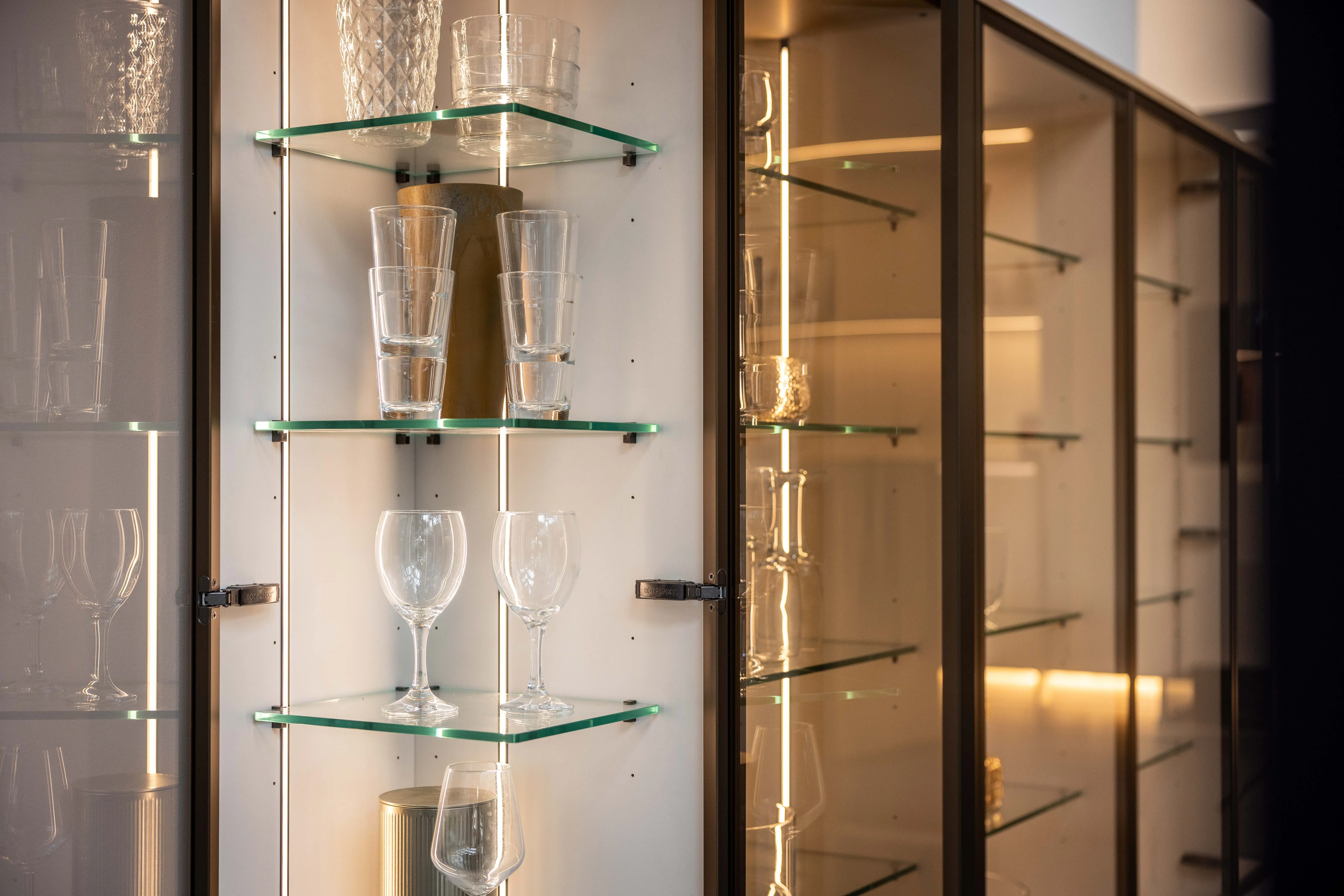 Mit einer von vielen Glasschrank-Lösungen von Rotpunkt: Sowohl beim Rahmen als auch beim Glas können Sie­ zwischen verschiedenen Optionen wählen. Eine glasklare Angelegenheit, oder?